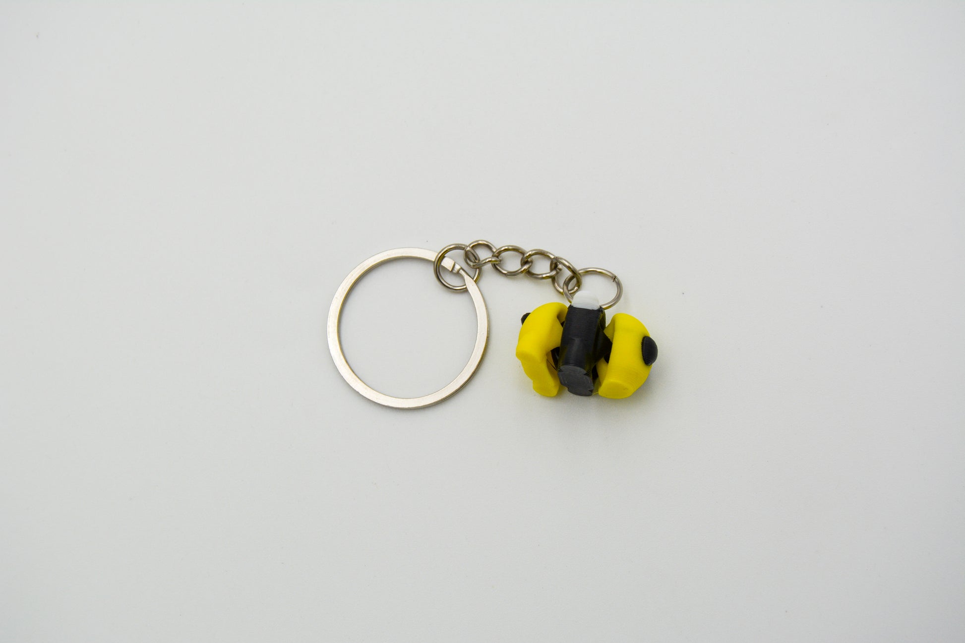 Buzz into style with our 3D Printed Articulated Bee Keychain! This adorable bee features three sections in classic black and yellow, complemented by black eyes and a tail, and delicate white wings. Crafted from eco-friendly biodegradable plastic, it offers playful movement and sustainability. Complete with a sturdy chain and loop, this keychain is perfect for adding a touch of nature's charm to your keys or bag.